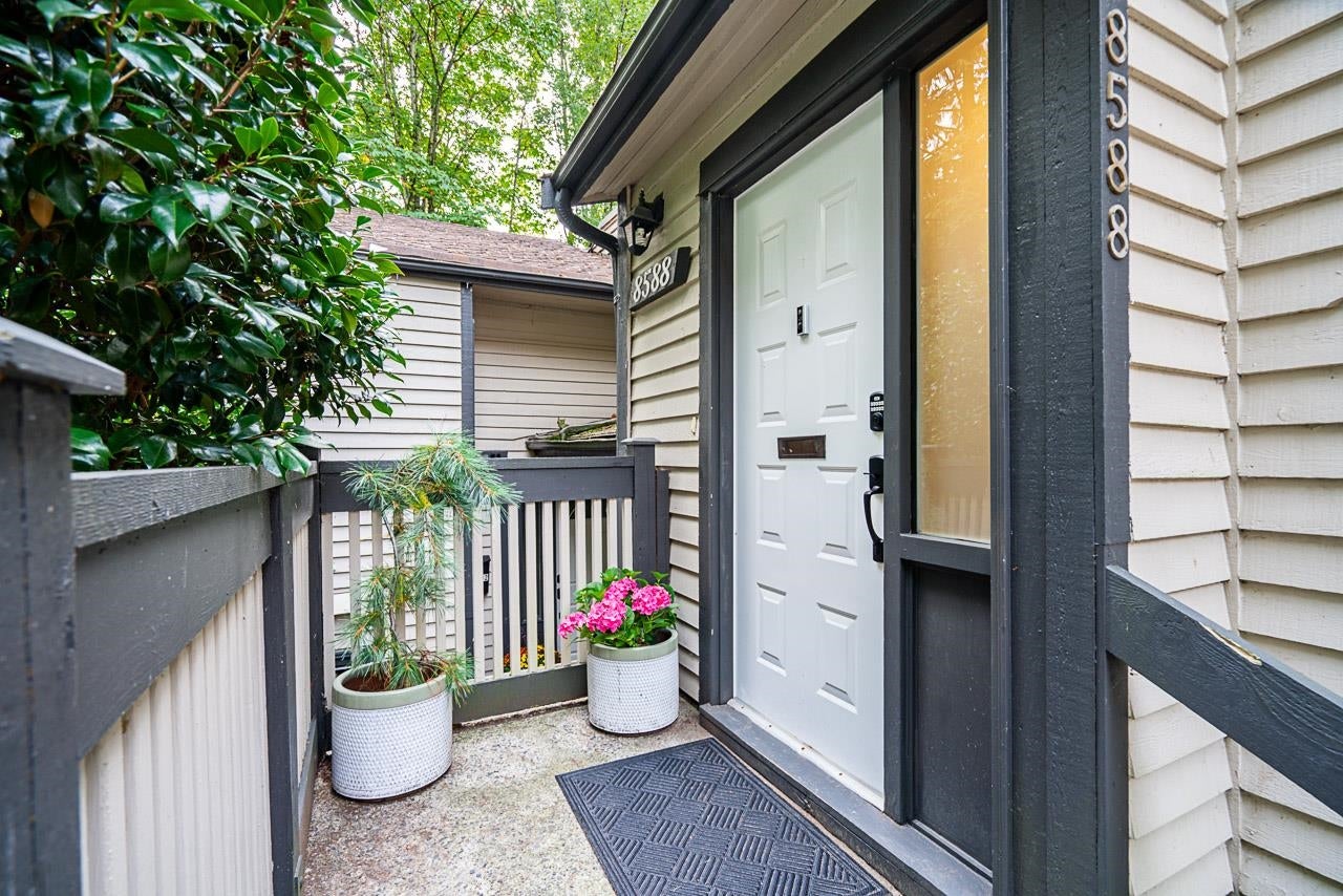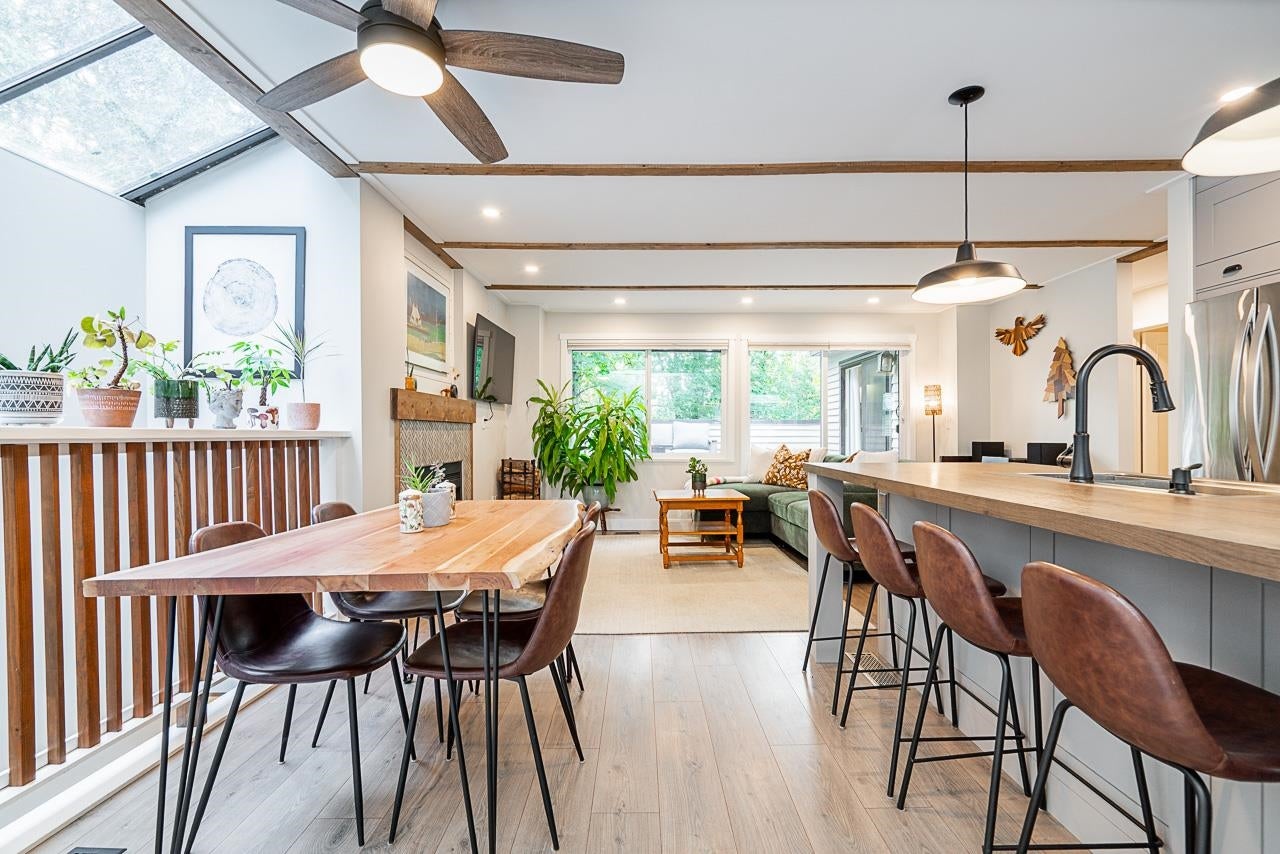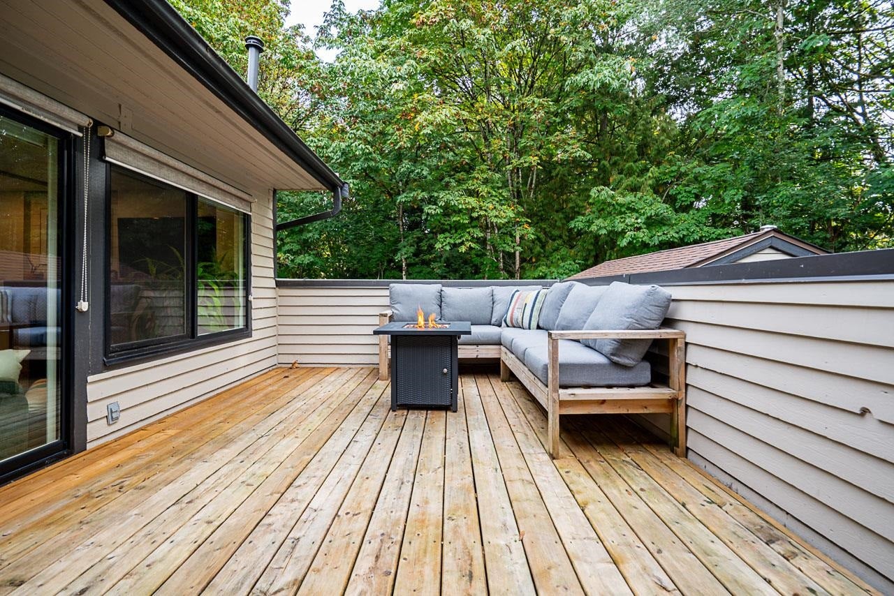 Nestled in serene Simon Fraser Village, this bright, renovated, spacious 2-bedroom end unit is a tranquil retreat. Offering the ease of open-concept, single-level living, the well-kept interior is a welcoming canvas, illuminated by a large skylight and new, expansive windows. The true gem is your large, south-facing deck—a private oasis overlooking a peaceful greenbelt. Enjoy peace of mind with low maintenance fees, a proactively managed strata and a resort-like lifestyle featuring a pool, sauna, and squash court. Steps to trails, schools, golf, SkyTrain, and SFU. This pet-friendly home perfectly blends nature and convenience. Call Your Realtor!